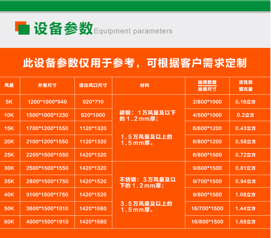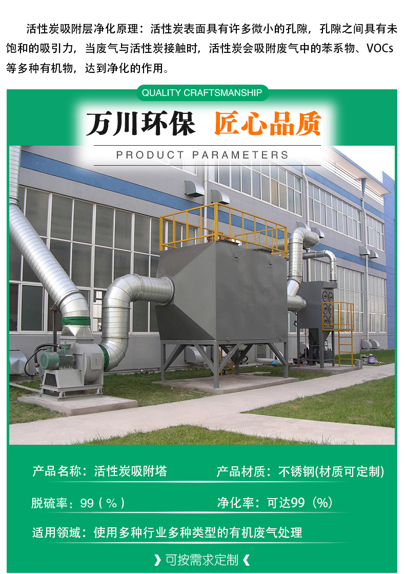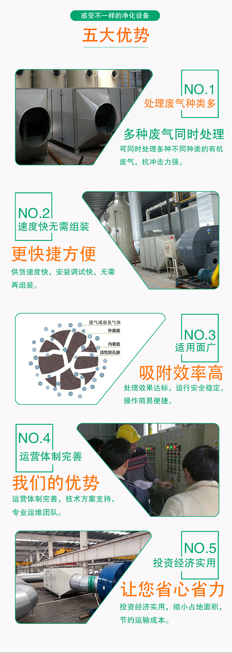 活性炭吸附裝置整體可采用PP、不銹鋼、鐵等材料制成,采用抽屜式的加炭方式,操作方便,占地面積小,安裝好即可使用,無(wú)需人工看管,做好清洗與換炭工作即可。