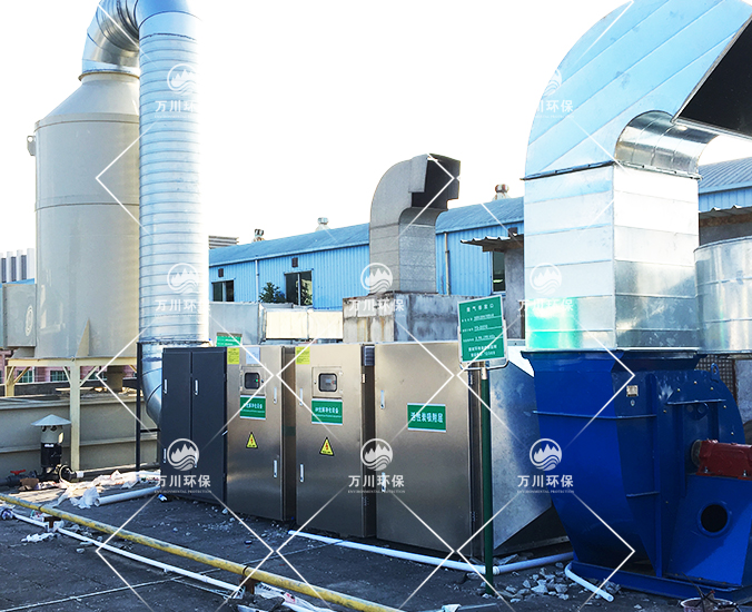 噴漆廢氣主要的成分為有毒的有機氣體和部分粉塵顆粒,首先經(jīng)過通風(fēng)管道將廢氣輸入噴淋塔內(nèi)進行清洗除去粉塵顆粒物,進到干濕過濾器進行干燥和過濾剩余的粉塵,干燥后進入UV光解凈化器,利用UV光解凈化器的原理把廢氣分子裂解,生成水和無機物。其次進入活性炭吸附塔,利用活性炭的多孔性存在吸引力,當(dāng)活性炭與廢氣接觸時活性炭會吸附廢氣分子,最后污染物被處理過后即可排放。