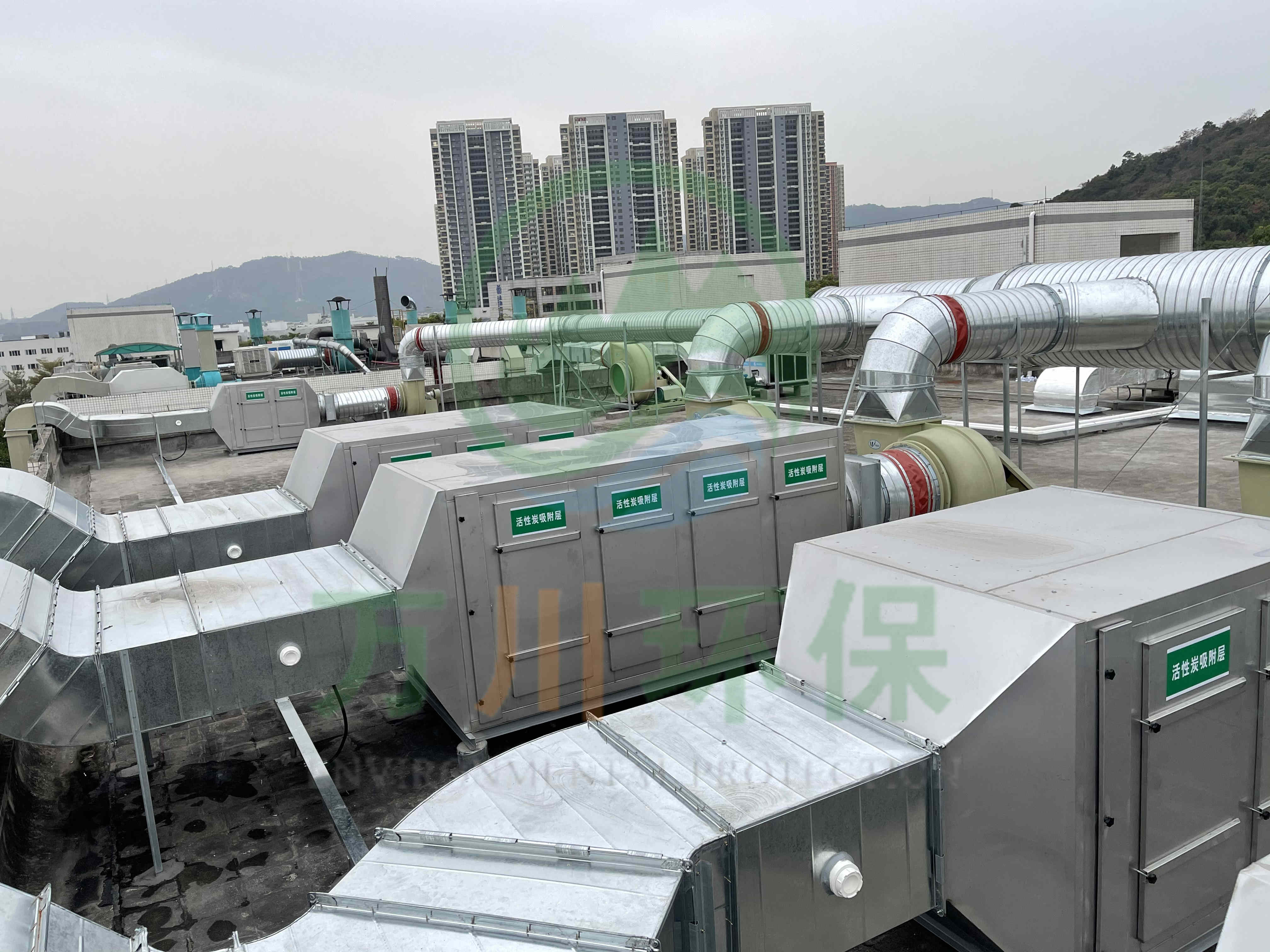 在廢氣處理上選用了活性炭吸附法,我們以活性炭作為吸附介質(zhì),廢氣通過活性炭吸附裝置,活性碳吸附有機揮發(fā)物,使其與氣體混合物分離,從而使氣體得到凈化。