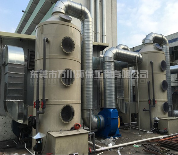 噴淋塔也叫水淋塔,是以水為介質(zhì)處理粉塵。含塵氣體從塔體下方進氣口沿切向進入噴淋塔,在風(fēng)機的作用下,迅速充滿進氣段空間,然后塔頂位置的噴淋頭向下噴水,水與含塵廢氣接觸,使得空氣和粉塵分離,達到除塵的效果。噴淋塔具有結(jié)構(gòu)簡單、造價低、占地面積小、凈化效率高等優(yōu)點,能夠處理高溫、高濕的氣流,將著火、爆炸的可能減至最低。經(jīng)治理后,污染物排放達到標準:執(zhí)行《廣東省大氣污染物排放標準》(DB44/27-2001)中第二時段一級標準。