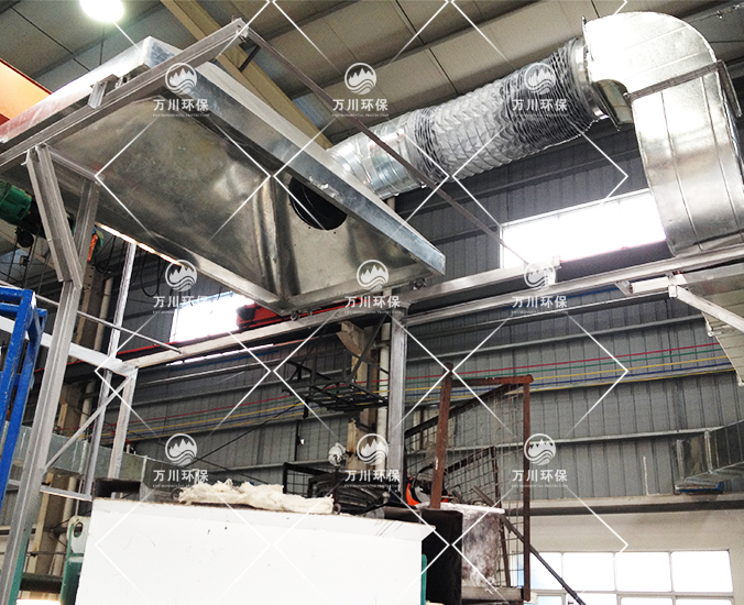產生的廢氣還有煙塵、油性、有溫度,因此采用噴淋的方式處理。
